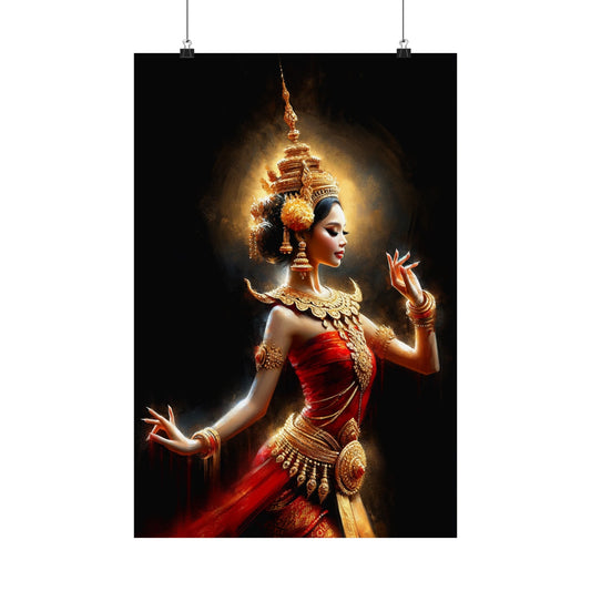 Matte Poster - Cambodian Apsara Dancer Print - Traditional Modern Khmer Art on Matte Poster
