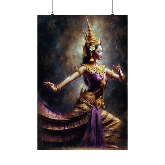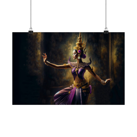 Matte Poster - Cambodian Purple and Gold Apsara Dancer Print - Traditional Modern Khmer Art on Matte Poster
